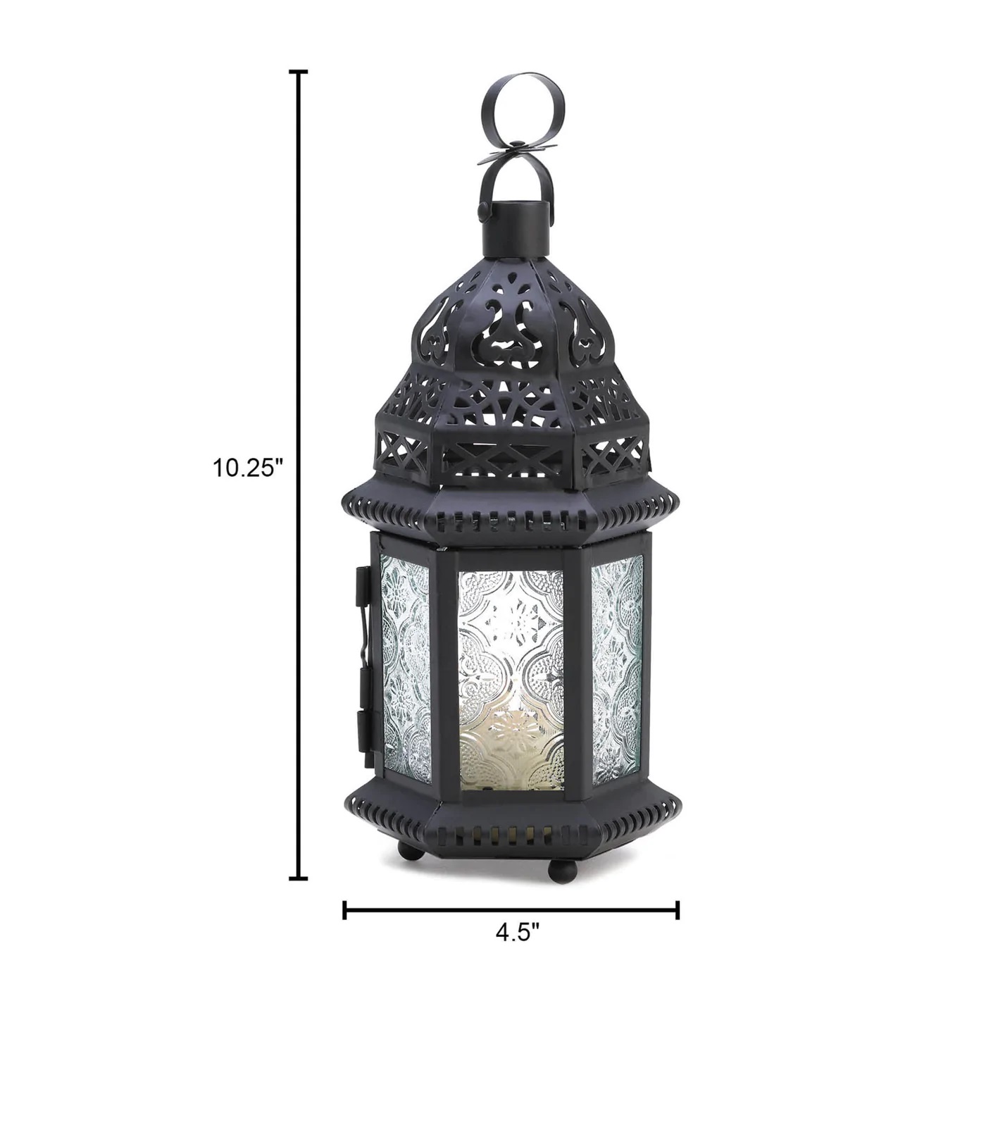 Illuminate your space with the stunning Clear Glass Moroccan Lantern. This intricately designed lantern features beautiful clear glass panels that create a mesmerizing pattern when lit. The Moroccan-inspired design adds an exotic touch to any room, making it the perfect addition to your home decor. Crafted from high-quality materials, this lantern is durable and long-lasting. Whether used indoors or outdoors, this lantern will add a touch of elegance and charm to any setting. Bring a touch of Morocco into your home with this exquisite Clear Glass Moroccan Lantern.