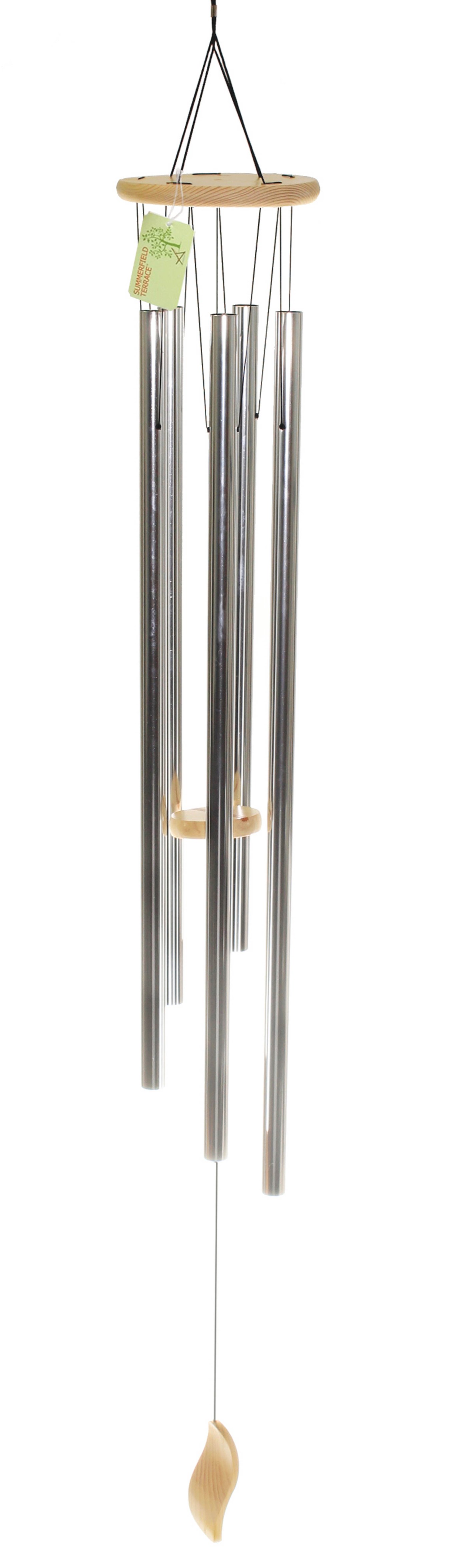 • Long shining pipes produce the serene sound of church bells from even the merest breeze, filling the air with ever-changing song. Wind chimes are symbolic of serenity and tranquility and are also thought to bring luck to whoever listens to them.