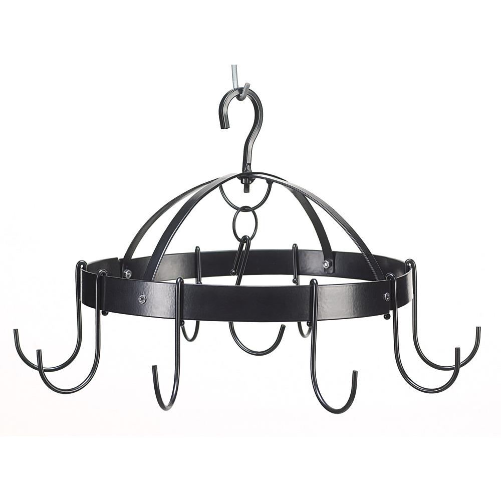 • Organize your kitchen in a flash with this marvelous miniature pot rack! Ideal for small kitchens or to add instant storage to an unused corner, this handy circular rack holds nine pots or utensils right at your fingertips. Eliminates countertop clutter and crowded cabinets while adding gourmet flair to the heart of your home!