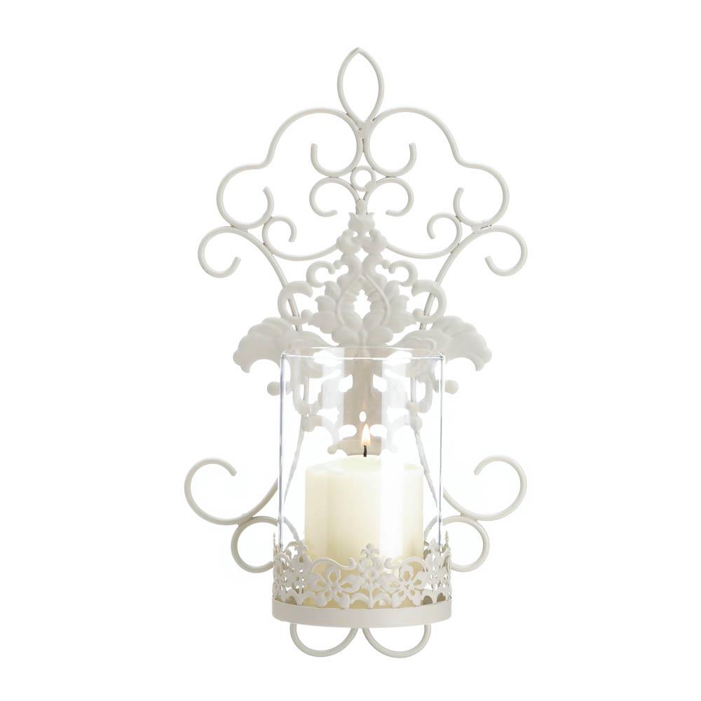 • Delicate lace and intricate scrollwork features make this ivory wall sconce a romantic lighting accent for any room.