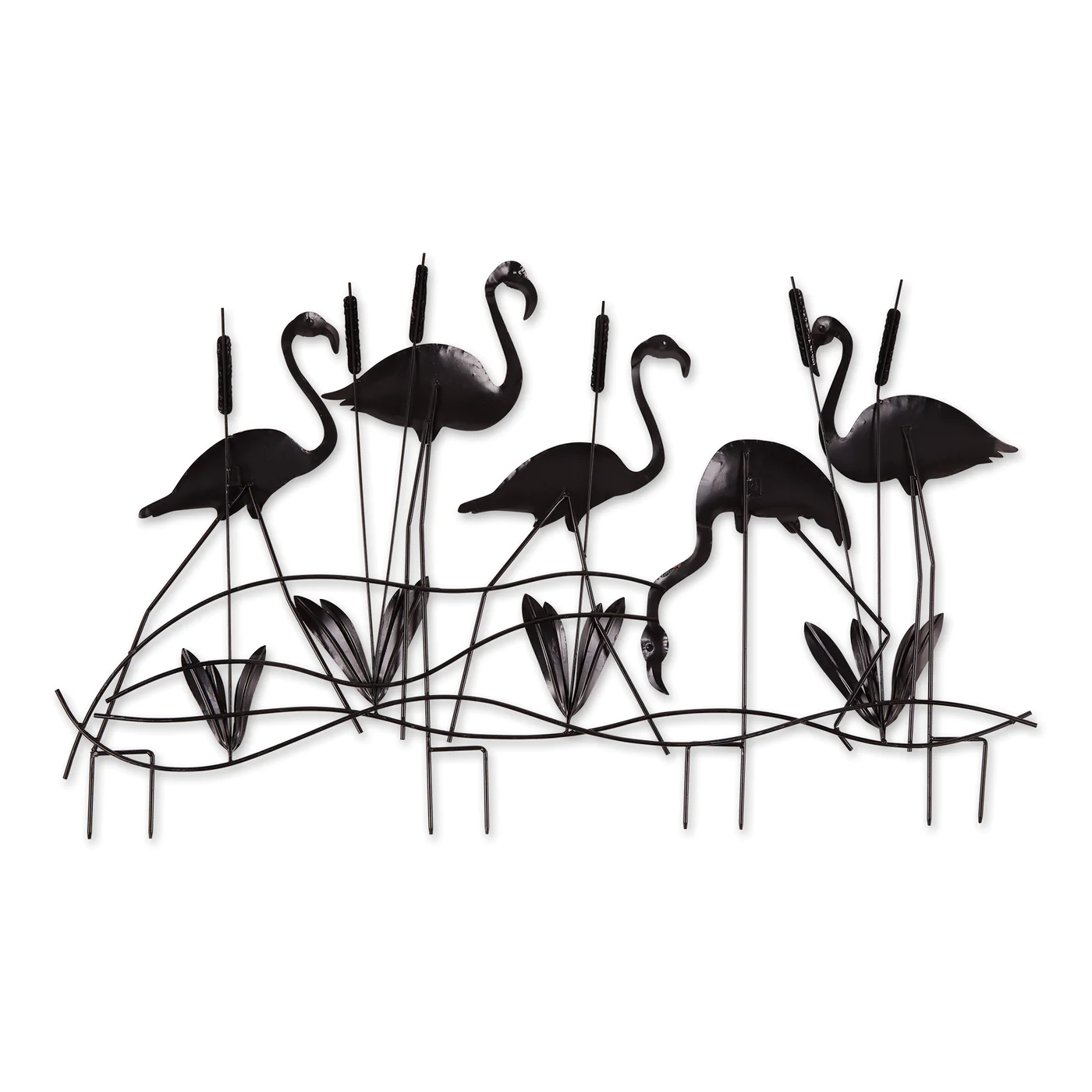 • Liven up your outdoor living space with a flock of flamingos! This delightful garden stake features cattails and five glorious pink flamingos captured mid-strut.