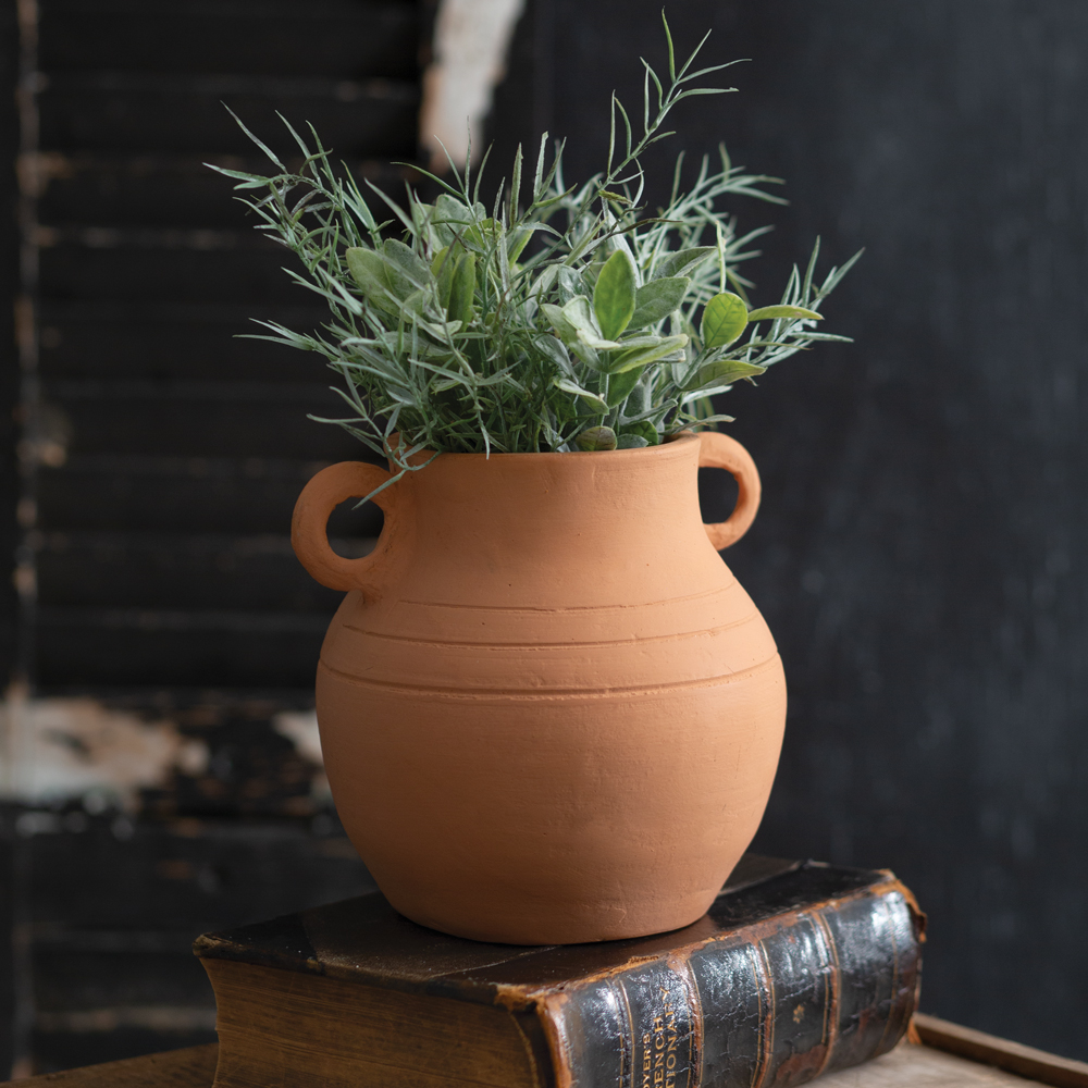 Meticulously molded by skilled artisans, this jug captures the warmth and character of traditional craftsmanship. The rich, earthy tones and distinct texture of the terra cotta clay exude a sense of history and authenticity, making it a perfect accent for both modern and vintage-inspired interiors. This terra cotta jug is handmade. Differences in shade and shape are to be expected.