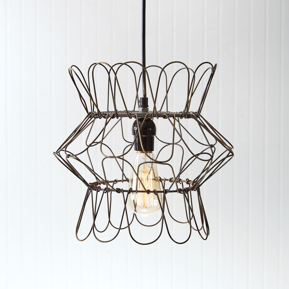 A classic French farmhouse basket takes a twist for this small pendant lamp. Its scalloped edges and wire features give it an antique look, all while being a trendy lamp. Wire and canopy has an antique brass finish. Requires a standard light bulb, not included. 60-watts is the maximum suggested bulb wattage for this item. Item must be hardwired.