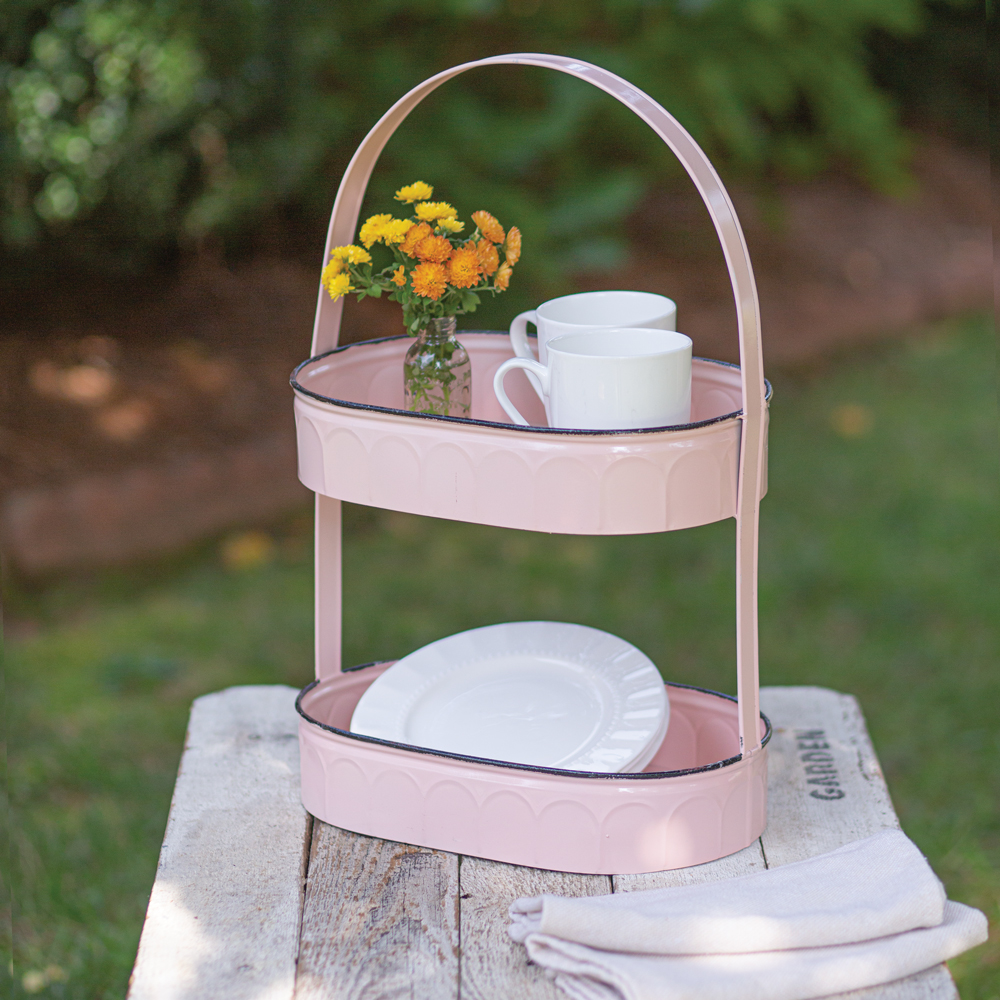 Two-Tiered Oval Pink Tray Two-Tiered Oval Pink Tray