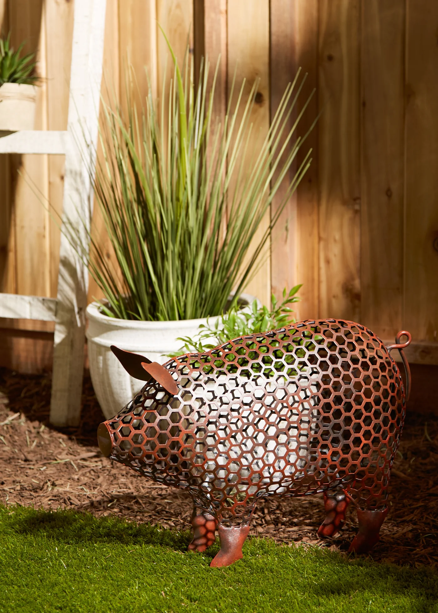 • Charming pig with a curled tail is a charming addition to any indoor or outdoor space.