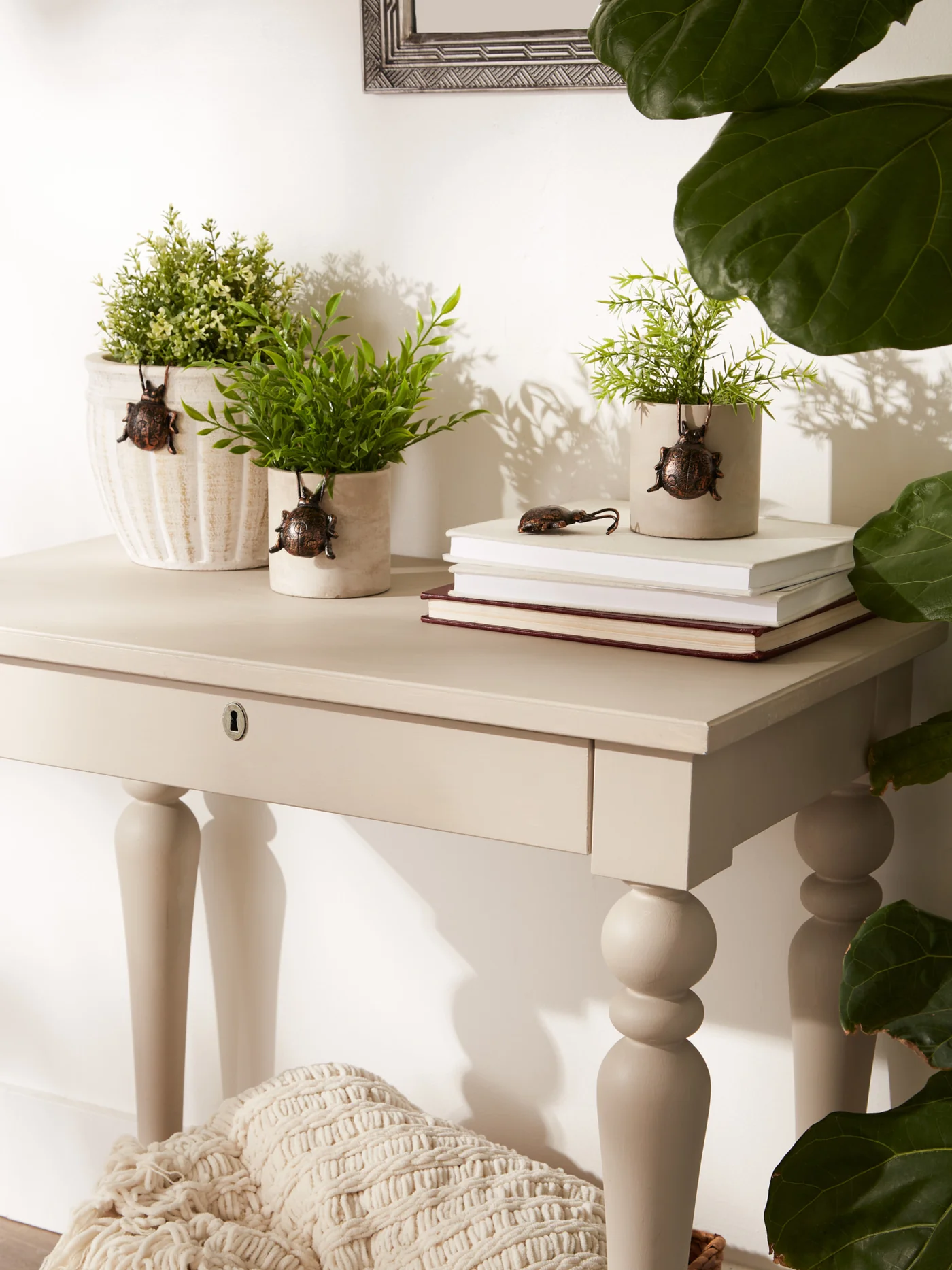 • Hang this durable cast iron decor from all of your pots and flower baskets to add a bit of whimsy to your space.
