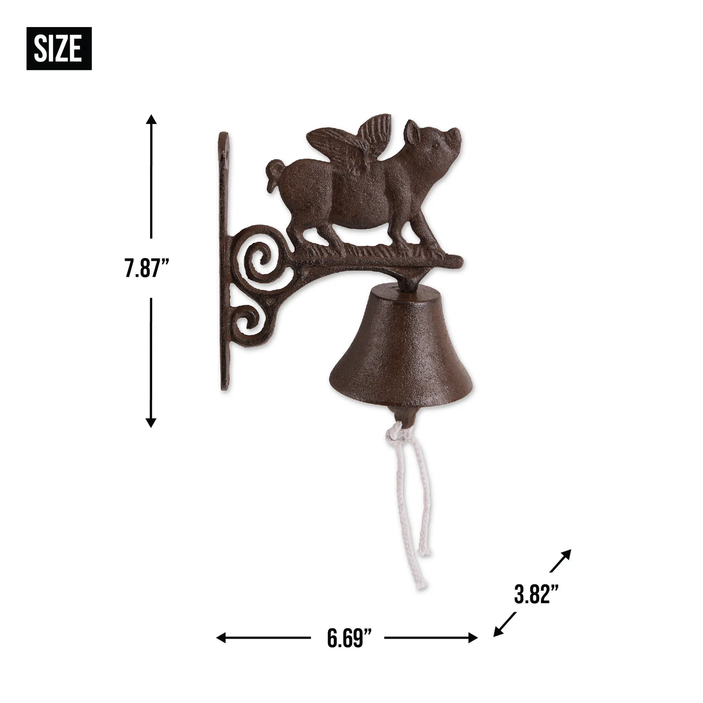 • Cast iron pig with wings bell is made of durable cast iron and is easily mountable to garage, house, fence posts, deck or fence in your yard.