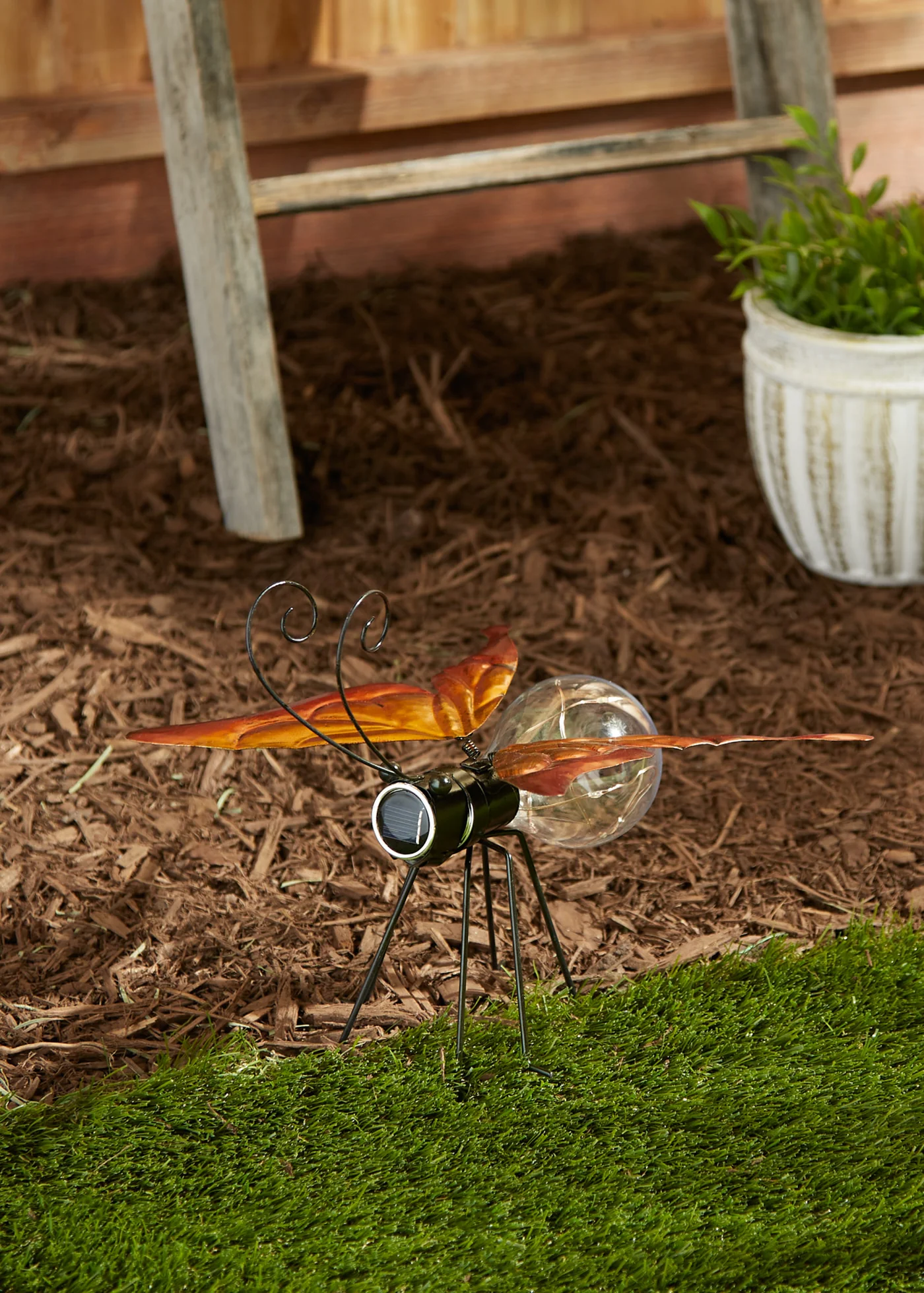 • This outdoor solar garden stake both illuminates your garden at night and acts as beautiful daytime yard art. Simply stick the stake into the soil and allow the solar panel to work its lighting magic.
